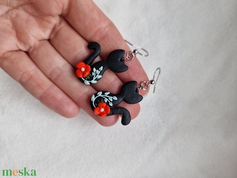 Cicás-virágos fülbevaló, süthető gyurmából, nemesacél akasztóval