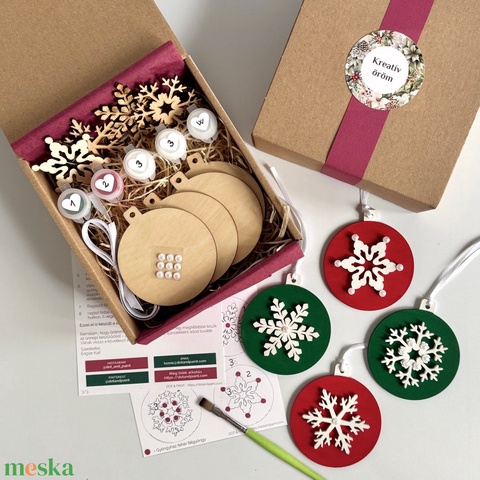 - Anyaga: akril festék, fa, lakk, akril félgyöngy, szatén szalag