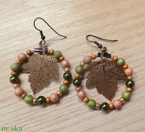 Őszi zöld-óarany fülbevaló szőlőlevéllel