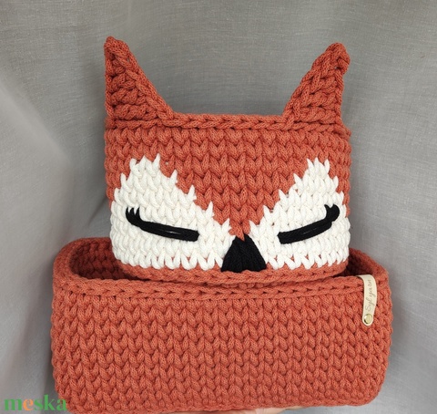 Horgolt rókás kosár, tároló szett / Babaváró ajándék