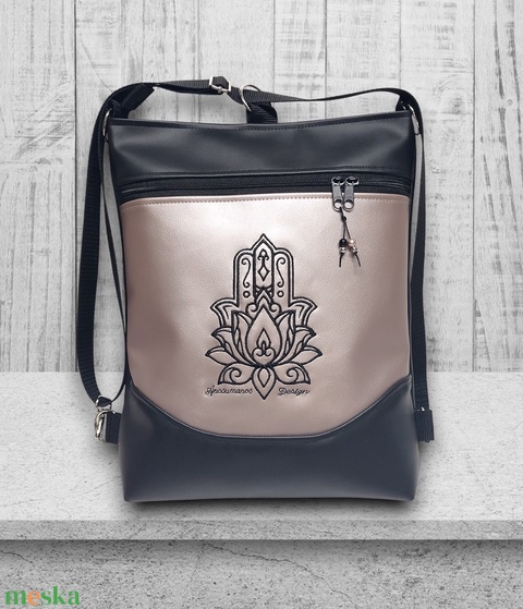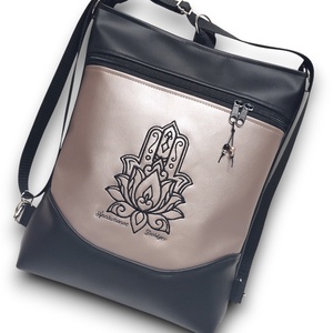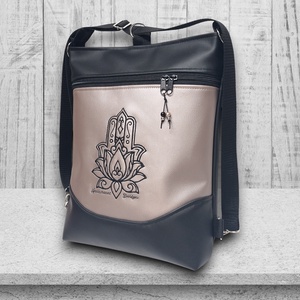 3in1 hátizsák univerzális táska Fatima keze hímzett fekete-gyöngyházpúder