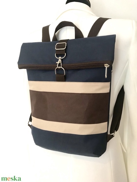 Roll Top-Kék-Barna-Beige-Vízálló-Hátizsák-Hátitáska