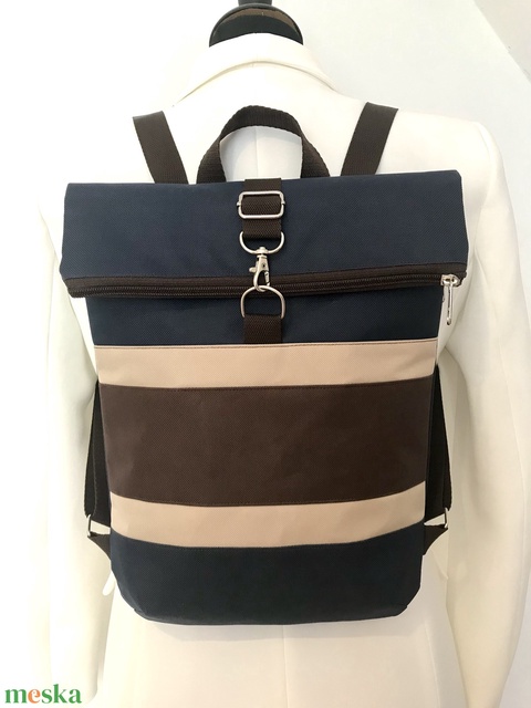 Roll Top Kék-Barna-Beige-Vízálló-Hátizsák-Hátitáska
