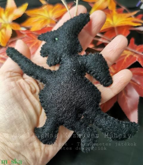 Boszorkány halloween dekoráció őszi dekor természetes anyagokból gyapjúfilc gyapjú fenntartható seprűn repülő boszi