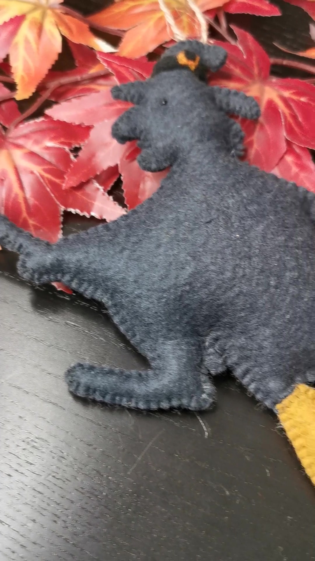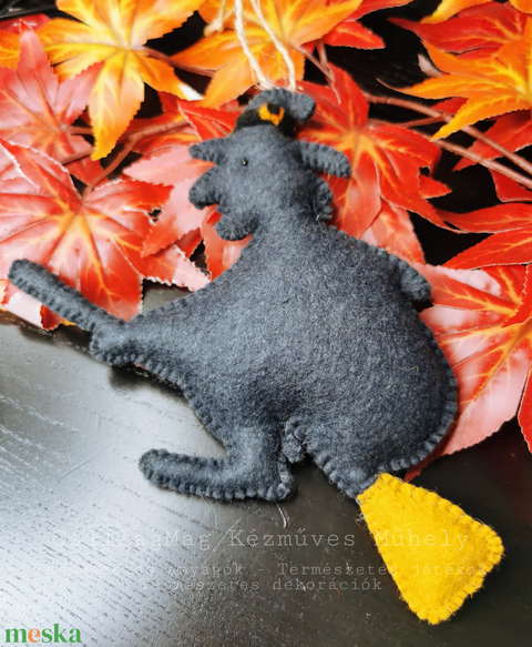 Boszorkány halloween dekoráció őszi dekor természetes anyagokból gyapjúfilc gyapjú fenntartható seprűn repülő boszi