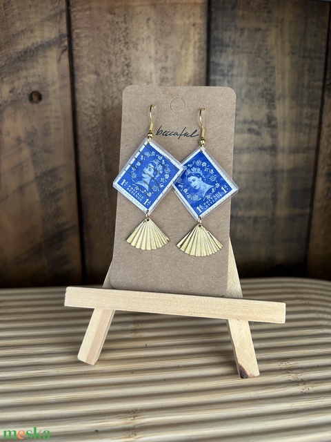 Régi vintage bélyeg fülbevaló sötétkék angol királyné