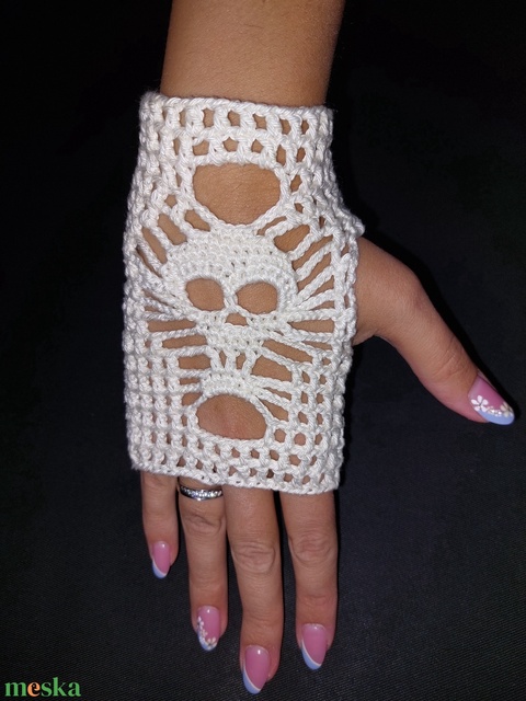 Horgolt Halloweeni csuklódísz / Halálfejes jelmez kiegészítő