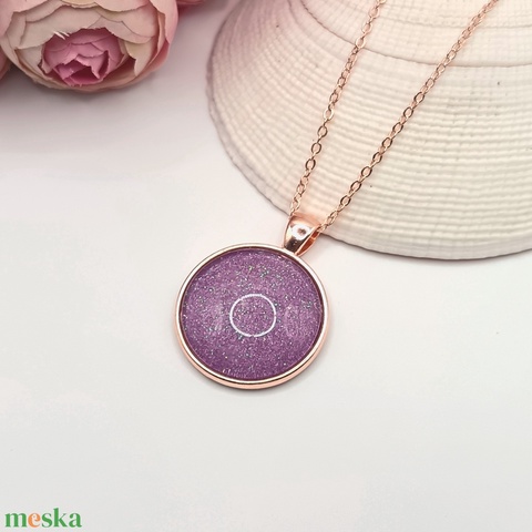 Rózsaarany nyaklánc – lila csillogó textilbőrrel