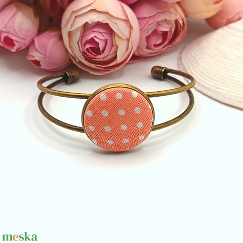 Antik bronz karkötő – barack, fehér pöttyös textillel