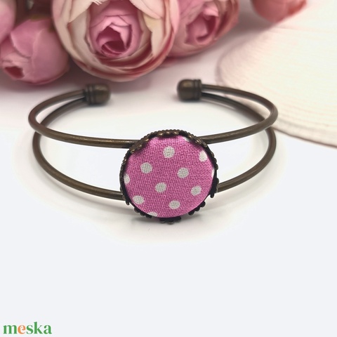 Antik bronz karkötő – rózsaszín, fehér pöttyös textillel