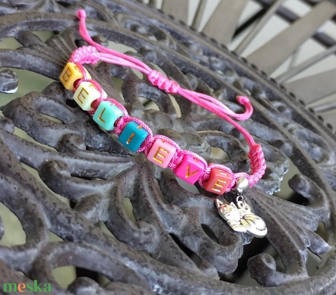 B.E.L.I.E.V.E. makramé karkötő cicával