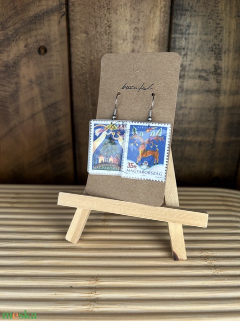 Régi vintage bélyeg fülbevaló karácsony karácsonyi