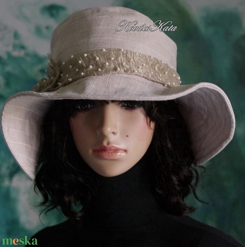 - Anyaga: 50% len, 50% pamut, gyöngyös organza, merevítő közbélés