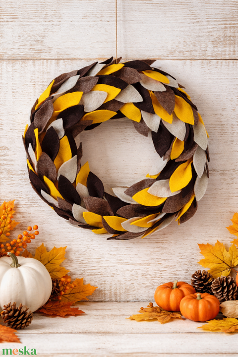 Őszi filc koszorú - filc otthon dekoráció - filc ajtódísz - filc koszorú