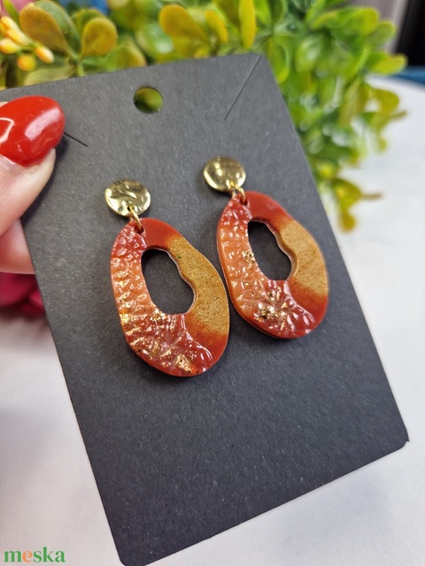 Bordó-narancs-arany fülbevaló