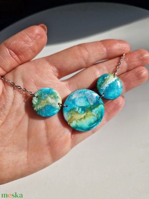 Türkiz-kék tripla nyaklánc