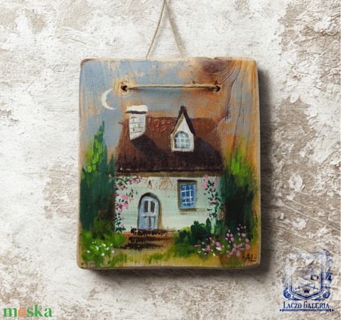 Vadrózsák és Kifli hold - Rusztikus Fatábla, Ajándék ötlet - Egyedi Falidísz - Házikó