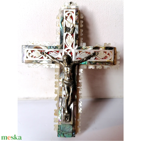 Álomszép kagyló berakásos kereszten, Jézus feszület