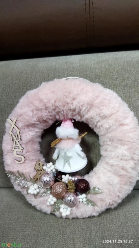 Rózsaszín, kislányos karácsonyi ajtókopogtató