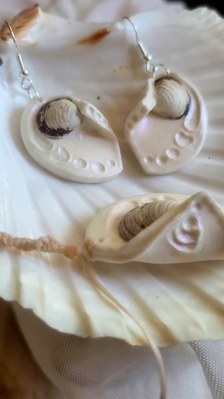 - Anyaga: ékszergyurma, kagyló, akrilfesték, nikkelmentes
