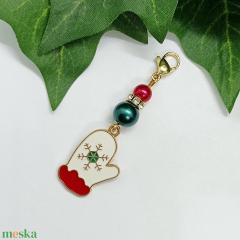 Színes kesztyű medálos kulcstartó, táskadísz