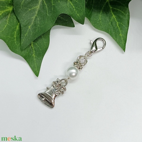 Ezüst színű harang medálos kulcstartó, táskadísz