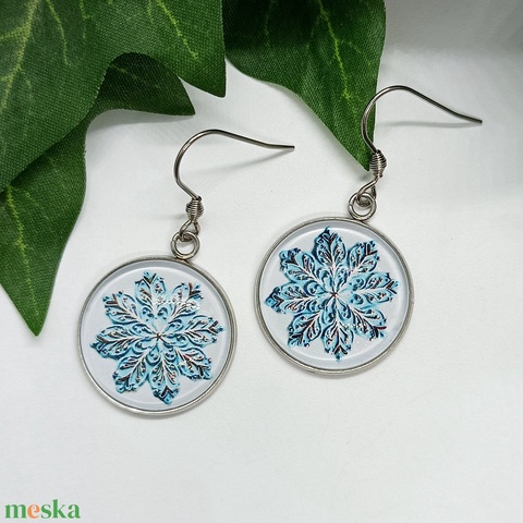 Hópehely mintás üveglencse medálos lógós nemesacél fülbevaló