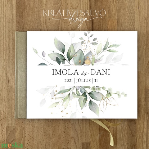 Greenery, zöld leveles esküvői vendégkönyv, fotókönyv - esküvő - emlék & ajándék - vendégkönyv - Meska.hu
