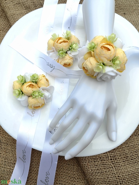 3 darabos sárga boglárka fejes esküvői csuklószalag szett