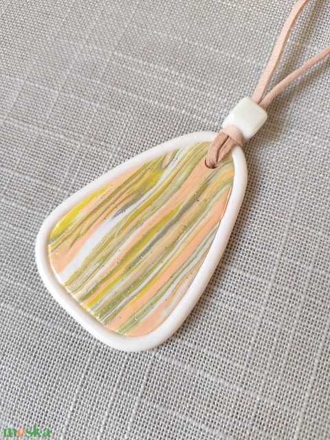 - Anyaga: ékszergyurma, bőr szíj, kerámia dísz