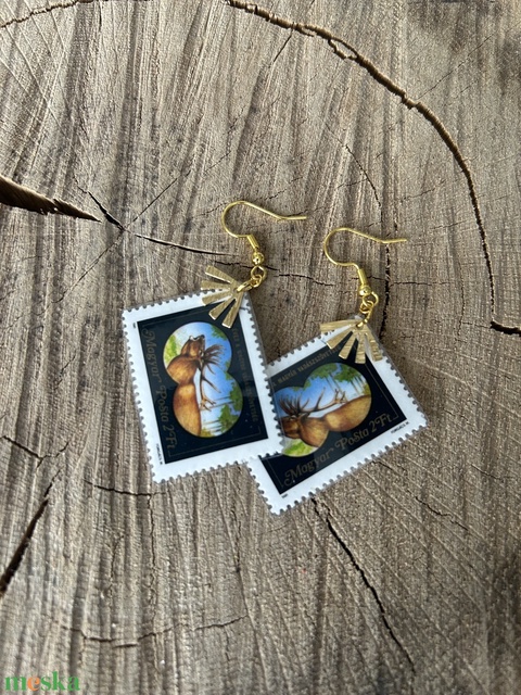 Régi vintage bélyeg fülbevaló szarvas szarvasos