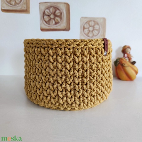 Horgolt kosár - Okkersárga