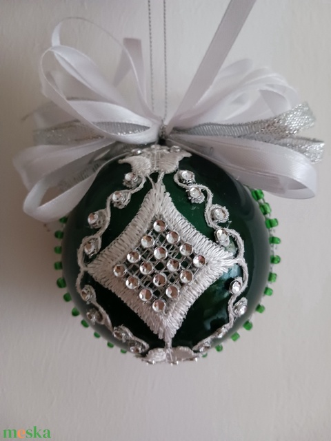 Fehér-ezüst, diszitett gömb