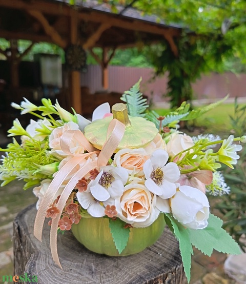 - Anyaga: kerámiapor, akrilfesték, selyemvirág, termés, tűzőhab