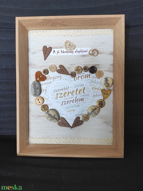 A házasság alapkövei szíves esküvői ajándék gombokkal