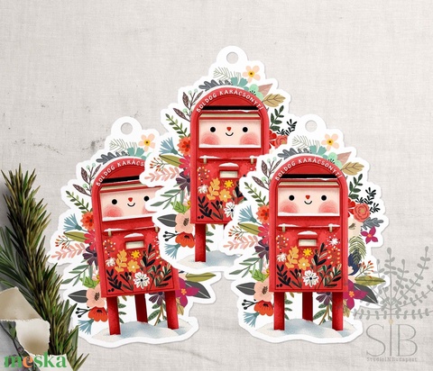karácsonyi ajándékkísérő, ajándékátadó címke, piros postaláda
