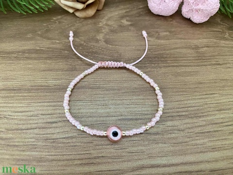 - Anyaga: japán kásagyöngy, vigyázó szem gyöngy, viaszos zsinór