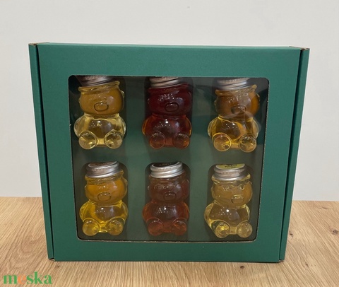 Termelői méz díszdobozban üveges macikkal 6x50gr kiszerelésben