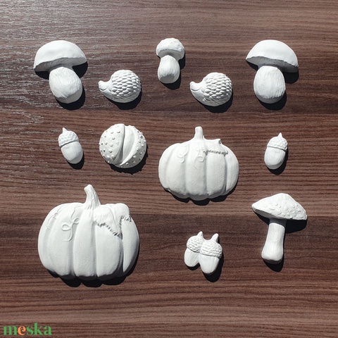 Festhető gipsz figura csomag - ősz - 13 db (gomba, makk, tök, süni, szőlő)