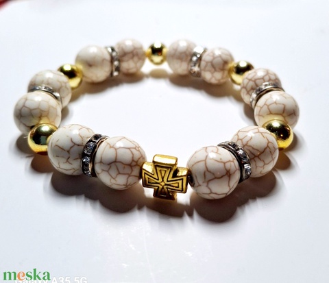 - Anyaga: gumis damil, gyöngyök, strasszok, arany színű gyöngyök