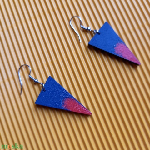 Háromszög alakú kék-piros fa fülbevaló