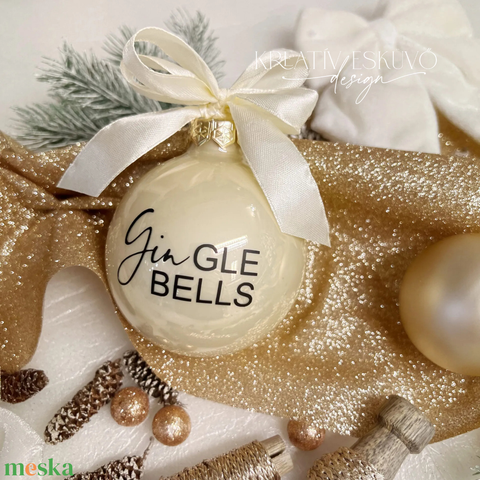 GINgle bells karácsonyi üveggömb, feliratos karácsonyi üveg gömb dísz, karácsonyfa dísz