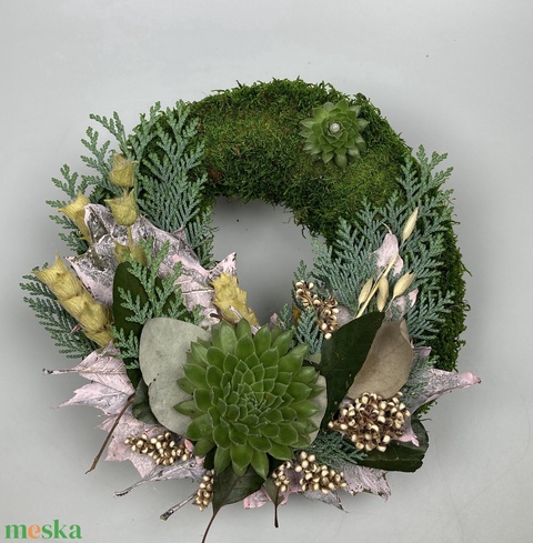 - Anyaga: kellékek, termés, szárazvirág, mohakoszorú