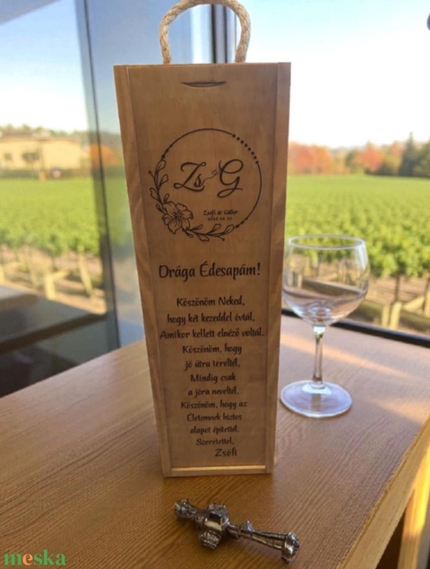 Egyedileg gravírozott boros fa doboz – Szülőköszöntő ajándék