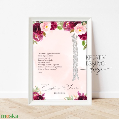 Kötélceremónia tábla - Burgundy, bordó virágos