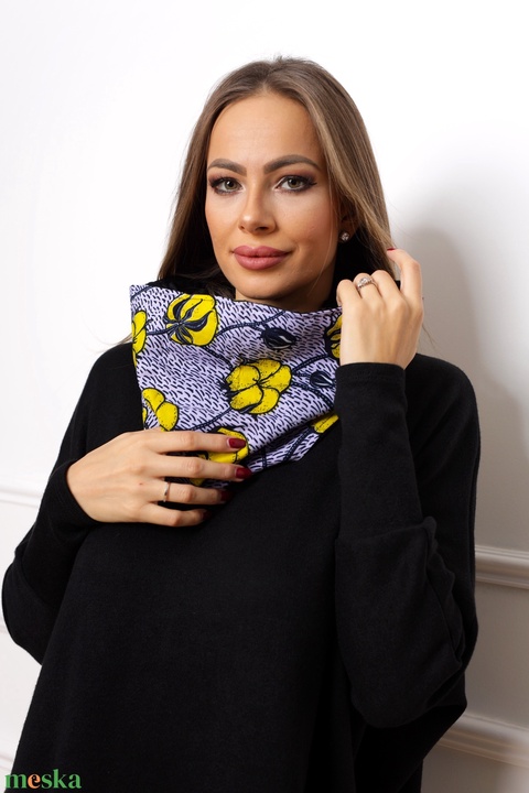 Kézzel készített pamut sál – egyedi dizájnnal. Ez a gyönyörű, kézzel készített pamut csősál (mérete: 75x28 cm) ideális választás mindenki számára, aki értékeli az egyedi, minőségi kiegészítőket, az egyedi dizájnt. A sál különleges mintázatú, külső része 100% pamutból készült, így nemcsak kényelmes, hanem tartós is. A bélése minky anyagból készült, amely az egyik legpuhább, legkényelmesebb viselet. Afrika ihlette mintákat magyar gondossággal fűszereztük. A sál alapanyagai Afrikából és Magyarországról származnak, így minden darab különleges. Minden sál kézzel készül, így minimális eltérések lehetnek a méretben és mintázatban. Ez az afrikai mintákkal ellátott magyar termék egyedi stílust kölcsönöz bármely outfithez. Főbb jellemzők: Mérete: 75x28 cm (minimális eltérések előfordulhatnak a kézi készítés miatt) Alapanyag: Külső rész – 100% pamut, bélés – 100% poliészter Származási hely: Afrika és Magyarország Viseld a kultúra és kézművesség esszenciáját! Ez a különleges sál tökéletes ajándék szeretteidnek vagy saját magadnak. Emeld ki vele stílusodat, és élvezd az autentikus, kézzel készített termék egyediségét, amely csak Neked készült!