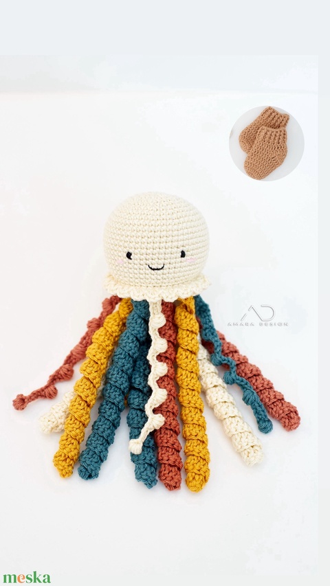 Horgolt KÖZEPES polip – az ősz színeiben - akár babazoknival