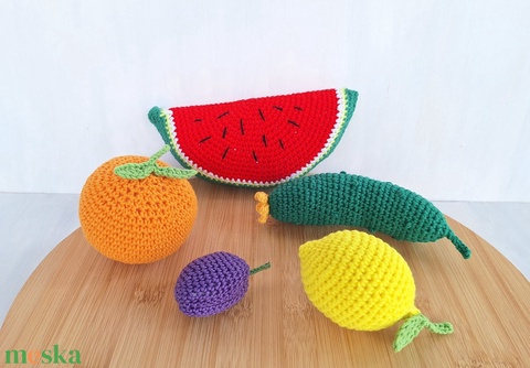 Horgolt zöldség-gyümölcs 5 db / csomag