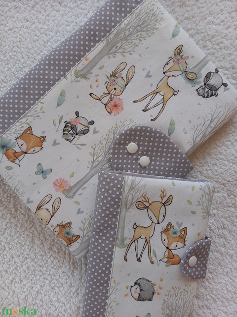 Erdei állatos Pelenkatáska, pelenkázótáska és Egészségügyi kiskönyv borító szett