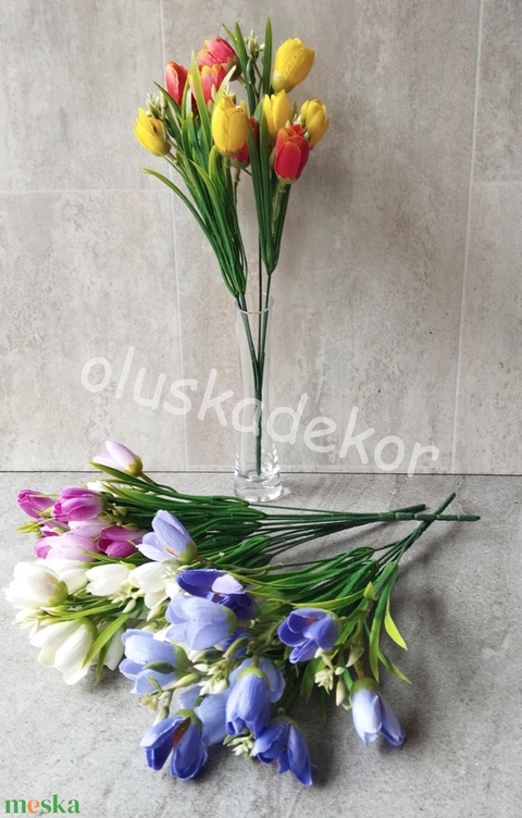 Crocus tavaszi, selyem dekorációs virágcsokor, 35cm